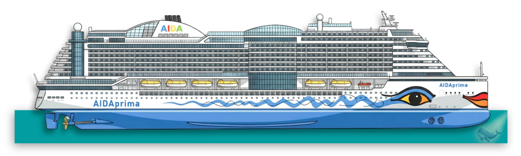 Die AIDAprima, das Flaggschiff der Hyperion-Klasse von AIDA Cruises, setzt neue Maßstäbe für Familienurlaub und Wellness auf dem Meer. Mit einer Länge von 300 Metern und 18 Decks bietet sie Platz für rund 3.300 Passagiere. Dank innovativer Technik und dem markanten senkrechten Bug ist sie nicht nur ein optisches Highlight, sondern auch besonders effizient unterwegs.